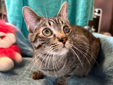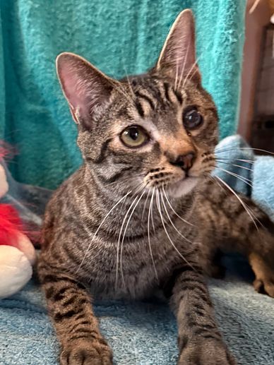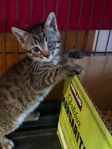 He ended up with upper respiratory issues and parasites, so it took awhile to get him healthy. After that, he was neutered and then, recently, had a surgical procedure done on his eye.